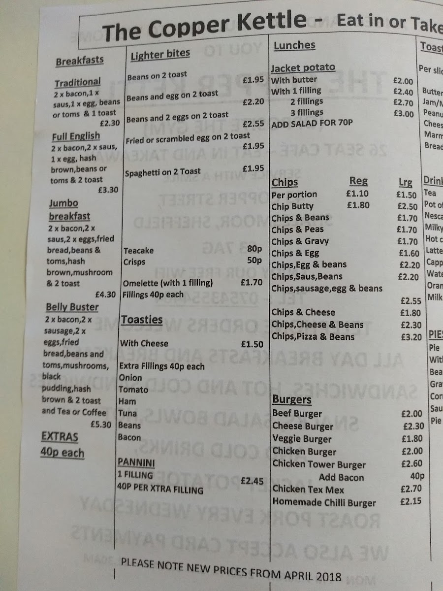 In conclusion, whether you're seeking a hearty breakfast, a comforting lunch, or a cozy spot to unwind with a cup of tea, The Copper Kettle has it all. With its blend of traditional food, warm customer service, and affordable prices, it's an essential part of Sheffield’s café culture. Visit today, and allow The Copper Kettle to warm your heart, sip by sip, bite by bite.
